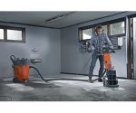 Extractor de polvo S36 Husqvarna, ideal para pulidoras PG 530 (monofásica), PG 450, PG 400, PG 280 y herramientas de esmerilado o fresado. Cuenta con tres motores comerciales, filtros HEPA H13 certificados y un pre-filtro cónico de gran superficie para máxima eficiencia en polvo fino.