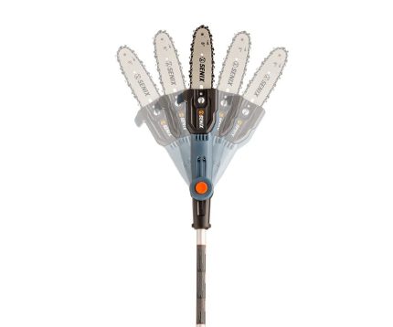 Su cabezal articulado permite acceder a ramas elevadas con gran maniobrabilidad. -